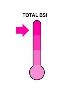 The image shows a thermometer with different shades of pink, ranging from light at the bottom to a darker shade at the top. The arrow at the side points to no BS.